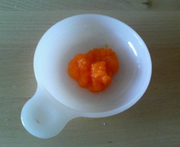 初めてにんじんの裏ごしをしたんですが意外とむずかしい。離乳食作りセット用意してなかったのでブレンダーで茹でたにんじんを細かくしたあとうちにある網で裏ごししたんだけれど意外と大変。やっぱり離乳食セットも買ったほうがいいかな~