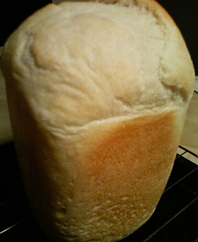 今朝早速食べてみると、とってもモチモチで噛めば噛む程あじが出るようなパンに仕上がってました。バターとかスキムミルクが入ってなくても十分おいしい。やっぱりお家でパンが焼けるっていいですね!
