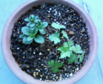 節約?と趣味を兼ねてハーブを育てることにしました。今バジルを種から育てているのですが、苗で買ってくるともっと簡単だったことに気づきたまたま見つけたミントとイタリアンパセリをベランダで育てることにしました。お料理にもつかえるので増えるのがとっても楽しみ♪RINGにも育てる楽しさを教えてあげたいし、どうしても外にお散歩いけない日はハーブを見てお外気分を作りたいと思います。昨日たまたま行った小野田町のやくらいの湯に隣接するお店にに苗がちょっとだけ売っていたのでそれを購入しました、たしか1個100円でかなり活き活き。夫maaの家族とみんなで行ったのですがその他のお花も「とってもいきがいい、ホームセンターのとはぜんぜん違う」とお義母さんが言っていました。帰りに夫maaの実家へよったのでついでに鉢に植えてもらっちゃいました(ラッキー)。