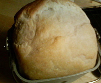 今朝早速食べてみると、とってもモチモチで噛めば噛む程あじが出るようなパンに仕上がってました。バターとかスキムミルクが入ってなくても十分おいしい。やっぱりお家でパンが焼けるっていいですね!