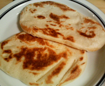 昨日の夕飯は残り物で作ったカレーだったので一緒にナンも焼いてみました。ナンといっても生地はピザの生地と一緒で、6つに分け10分寝かせた後6~7mmくらいの厚さのだ円をつくり油なしでフライパンで焼けば出来上がり。ととっても簡単でした。味も外で食べるのと変わらずナン好きの夫maaはとっても喜んでいました。作って冷凍しておけば焼くだけなのでカレーの時は毎回登場しそうです。(今回大きさは大体20×13cmくらいにできました。大きくお店のようなものにしたい時は生地を3等分位だと本格的な大きなになります。)